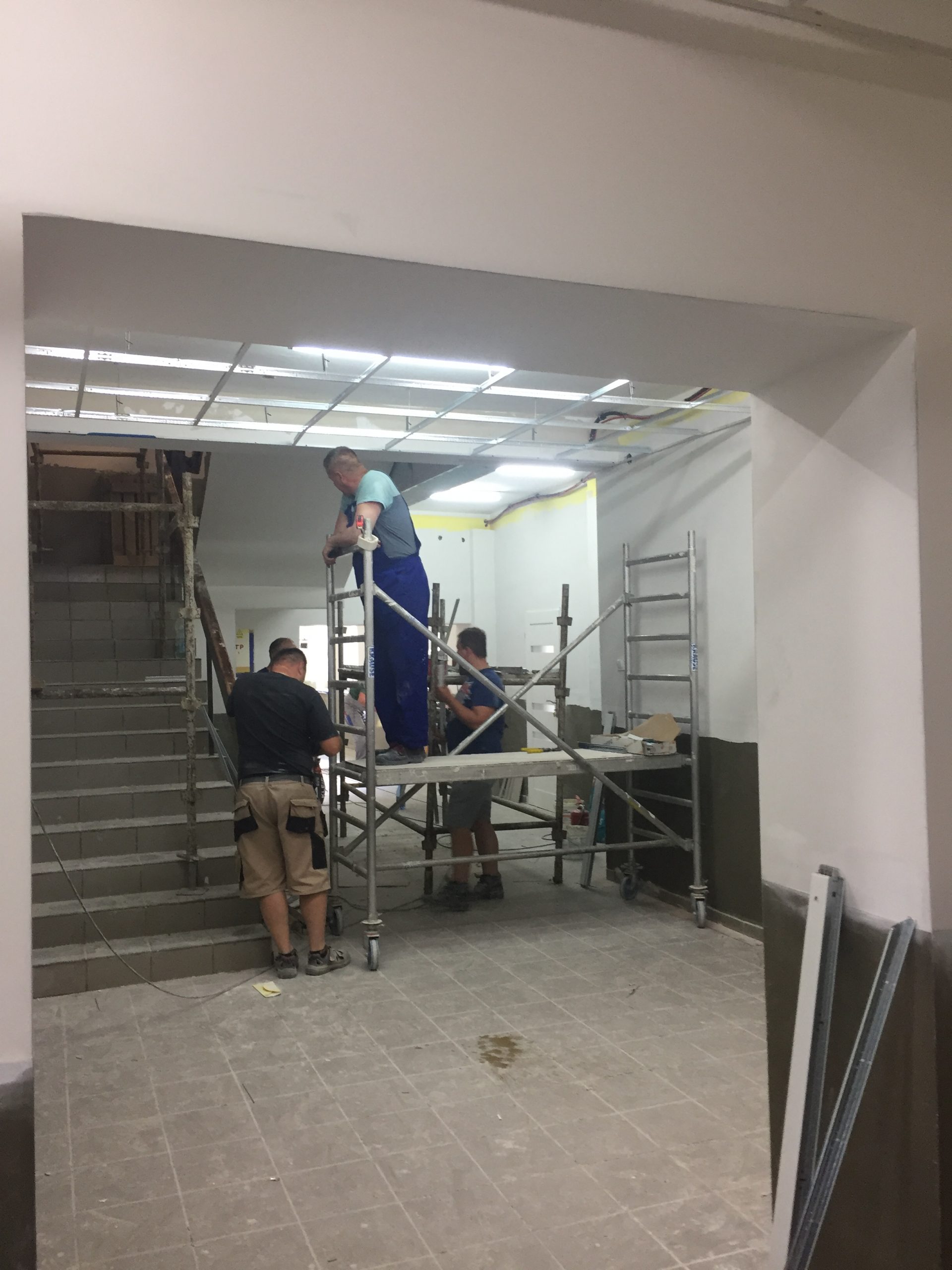 Korytarze zostały odświeżone to mało powiedziane... Poprzednia sala, która służyła do gimnastyki, będzie nową dużą salą lekcyjną... Na piętrze będzie sala przystosowana do zajęć z języków obcych... W nowej części: sala biologiczno - chemiczna...