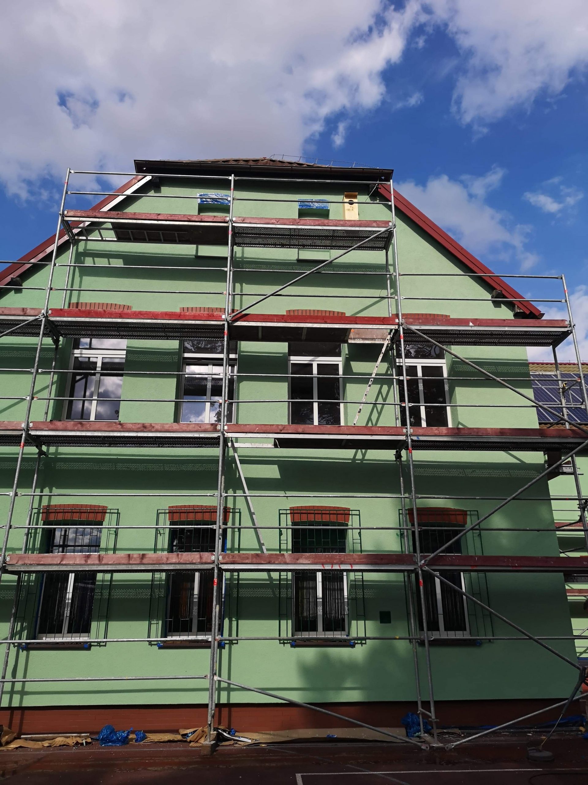 A na zewnątrz, odświeżona elewacja szkoły...