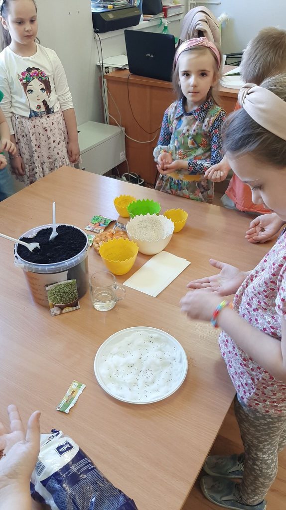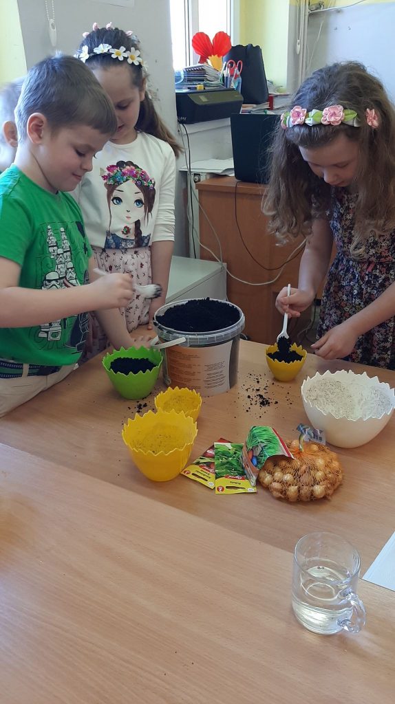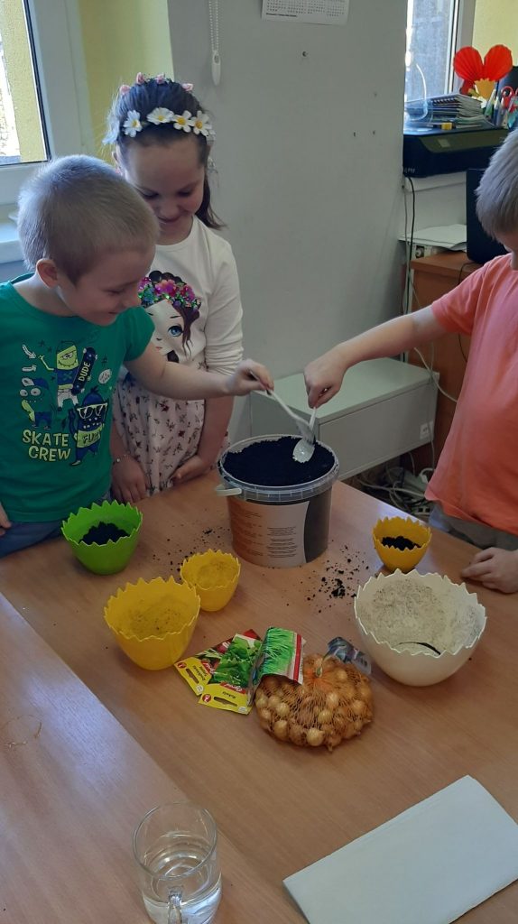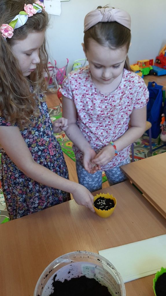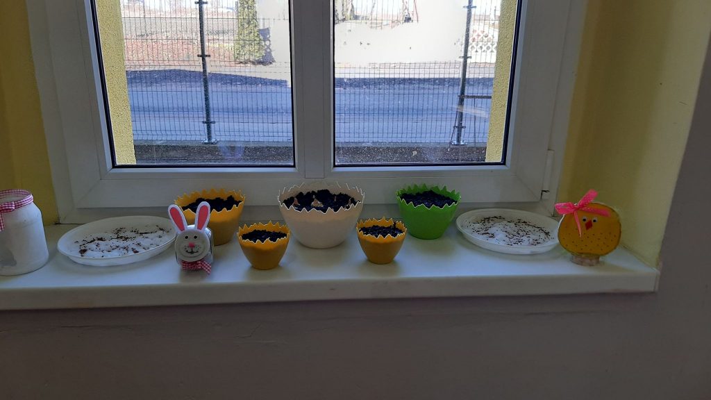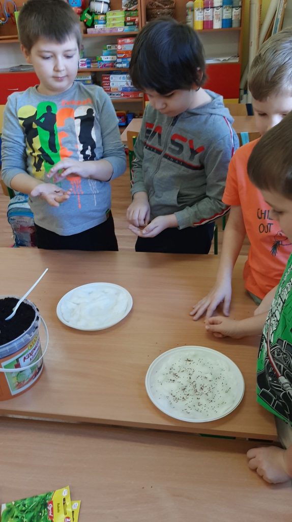 22 marca dzieci z klasy „0” od samego rana zabrały się do pracy i założyły klasowy „ogródek”. Posadziły cebulę, zasiały rzeżuchę, owies wielkanocny, rzodkiewkę oraz rukolę. Teraz prowadzą obserwację, kiedy nasiona zaczną kiełkować.