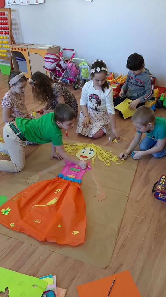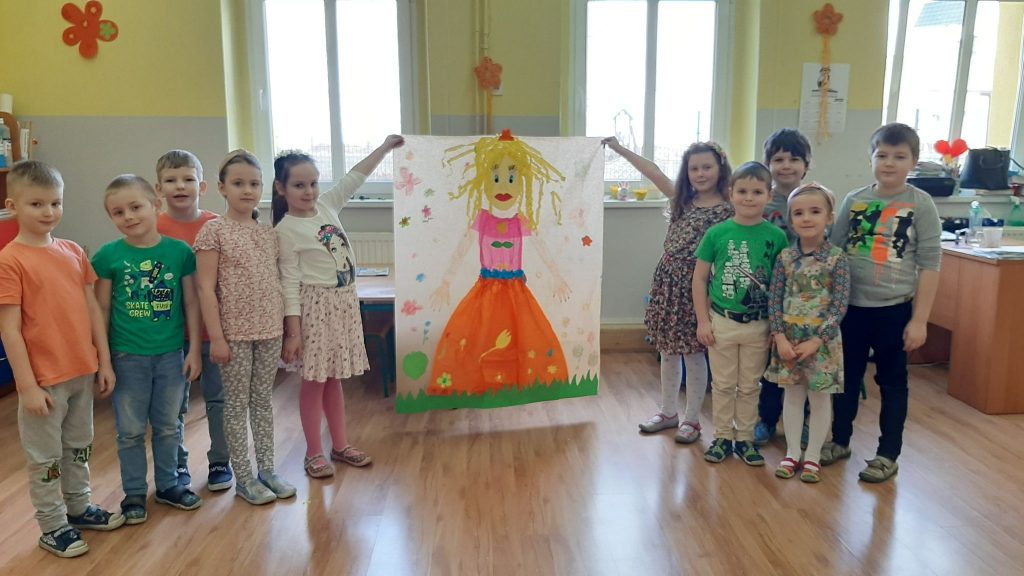 Następnie wykonały grupową pracę plastyczną. Do klasy zawitała piękna Pani Wiosna.