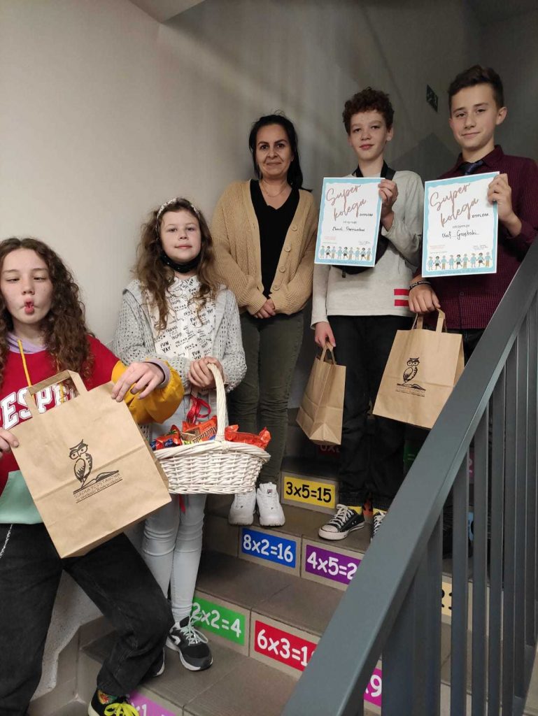 Dla uczniów klas IV -VIII Samorzad Uczniowski zorganizował konkurs na ,,Super kolegę”. Najwięcej głosów otrzymał Marcel Owsianikow, tuż za nim byli Artur Orszt oraz Olaf Grzębski. Wszyscy wymienieni uczniowi otrzymali dyplomy oraz atrakcyjne nagrody.