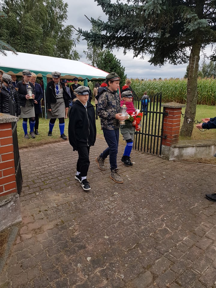 Po występach uczniów została odprawiona Msza święta w intencji poległych i pomordowanych we wszystkich miejscach kaźni a także na frontach II wojny św. po której przybyłe delegacje złożyły wieńce i wiązanki pod Pomnikiem, a uczniowie, zuchy z 6 GZ „Radowiaki”, harcerze z 66 DH „Waleczni” zapalili znicze.