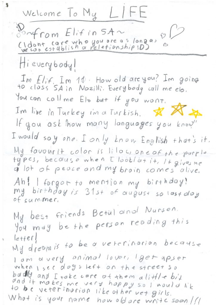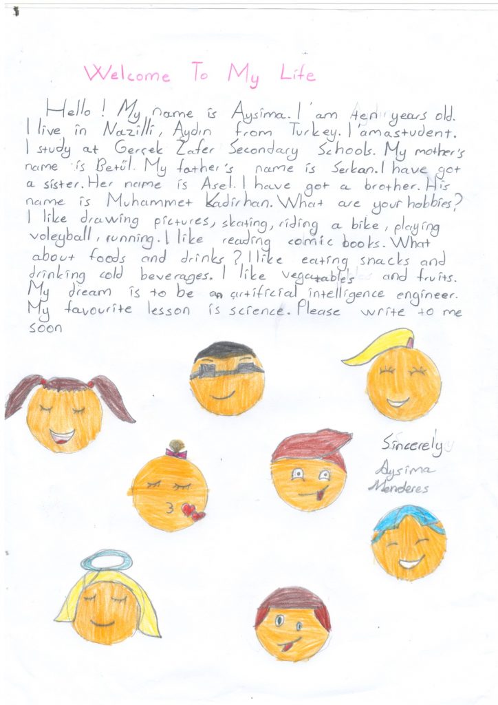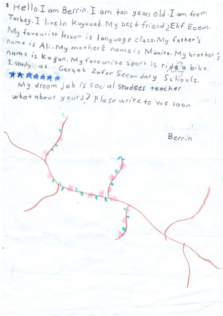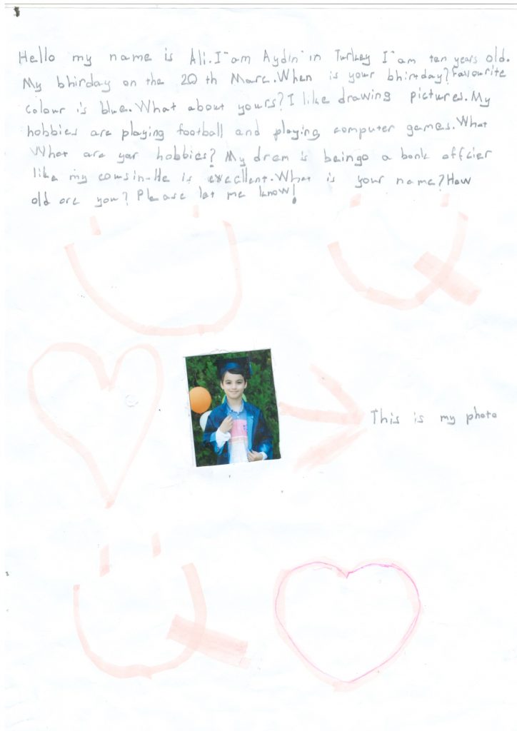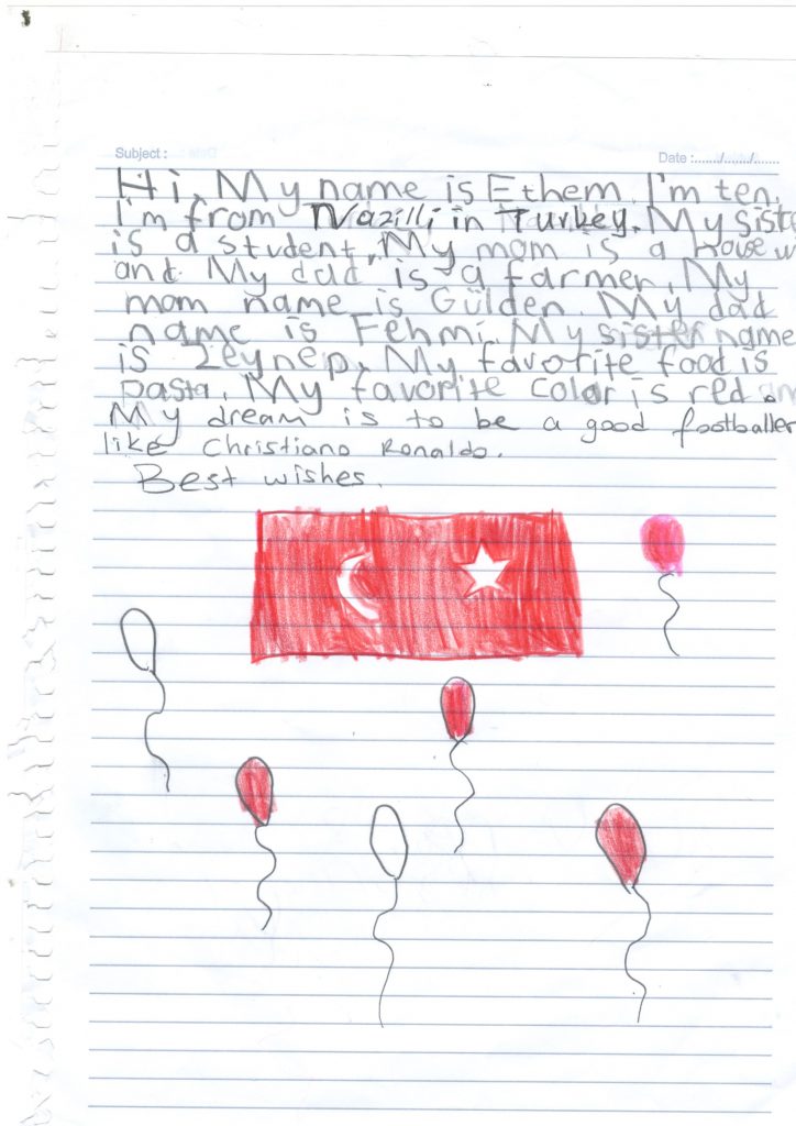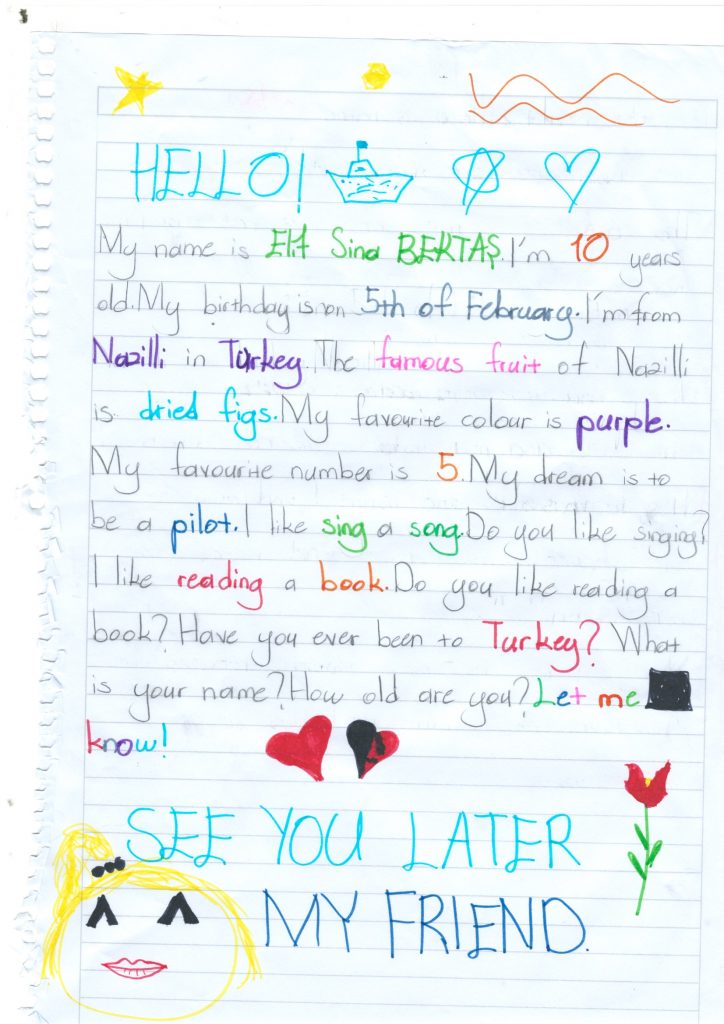 W ramach programu CAMBRIDGE PENFRIENDS nawiązaliśmy współpracę ze szkołą w Turcji . Tamtejsi uczniowie napisali do nas wiele listów. Oto kilka z nich: