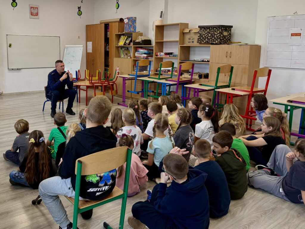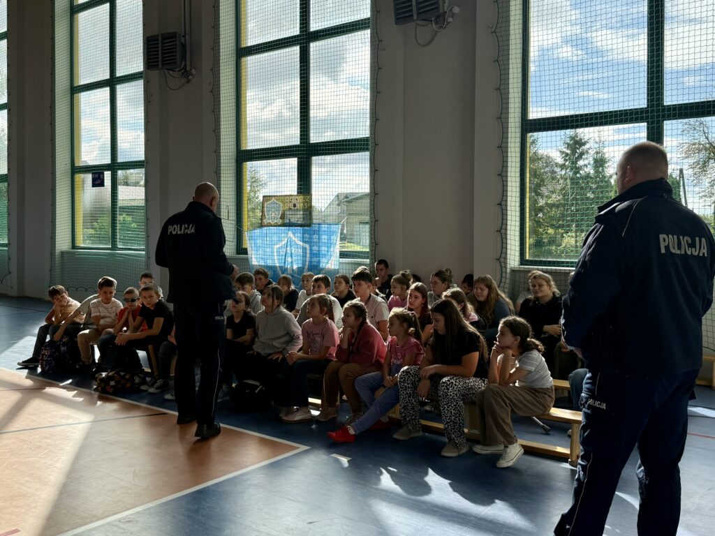 W czwartek, 9 października, naszą szkołę odwiedzili policjanci z Komendy Powiatowej Policji w Wąbrzeźnie, wraz z dzielnicowym asp. Marcinem Zielińskim. Funkcjonariusze przypomnieli uczniom m.in. zasady bezpiecznego poruszania się w drodze do i ze szkoły.